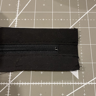 Avant de coudre les fermetures éclair sur leurs pièces respectives, je me suis assurée de couper l'excédent des pièces F égales des deux côtés, afin que ce soit la même mesure que la pièce avec laquelle elle sera cousu.