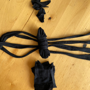 Avec l'ourlet du chandail noir (ou une autre retaille) la replier sur elle-même afin d'avoir un rectangle. Mieux vaux un plus grand rectangle qu'un trop petit, car il faudra le recouper plus tard. Ce rectangle servira pour faire le corps de l'araignée.