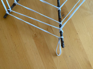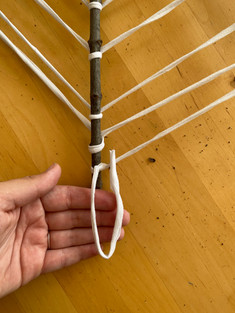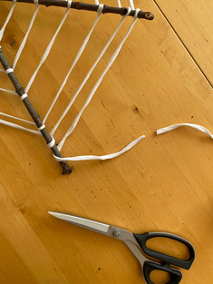 Une fois la toile terminé faite un noeud avec la corde autours de la branche, calculez 15 cm et coupez la corde.