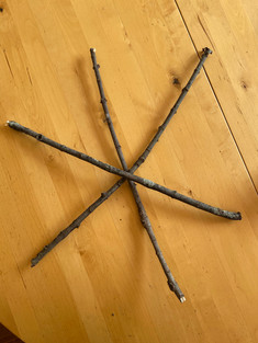 Positionnez les branches l'une par dessus l’autres. Faites un premier noeud avec la corde autour des branches. Pour bien maintenir le tout en place, enroulez la corde entre chaque branche jusqu'à temps que ce soit bien solide. Vous allez devoir passer plusieurs fois entre les branches. Ne coupez pas la corde.